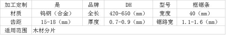 木工框鋸條根據(jù)鋸機型號、待加工木材尺寸、木材干濕度、木材軟硬度、木材紋理結(jié)構(gòu),選用合適的鋸條,包括合金硬度、齒距、齒形、齒寬、機體厚度和切削角度等。良好的應(yīng)力處理技術(shù),保證了鋸條在高速運轉(zhuǎn)過程中不易疲勞變形,木工框鋸條廣泛適用于各種軟硬木材、竹材的鋸切。